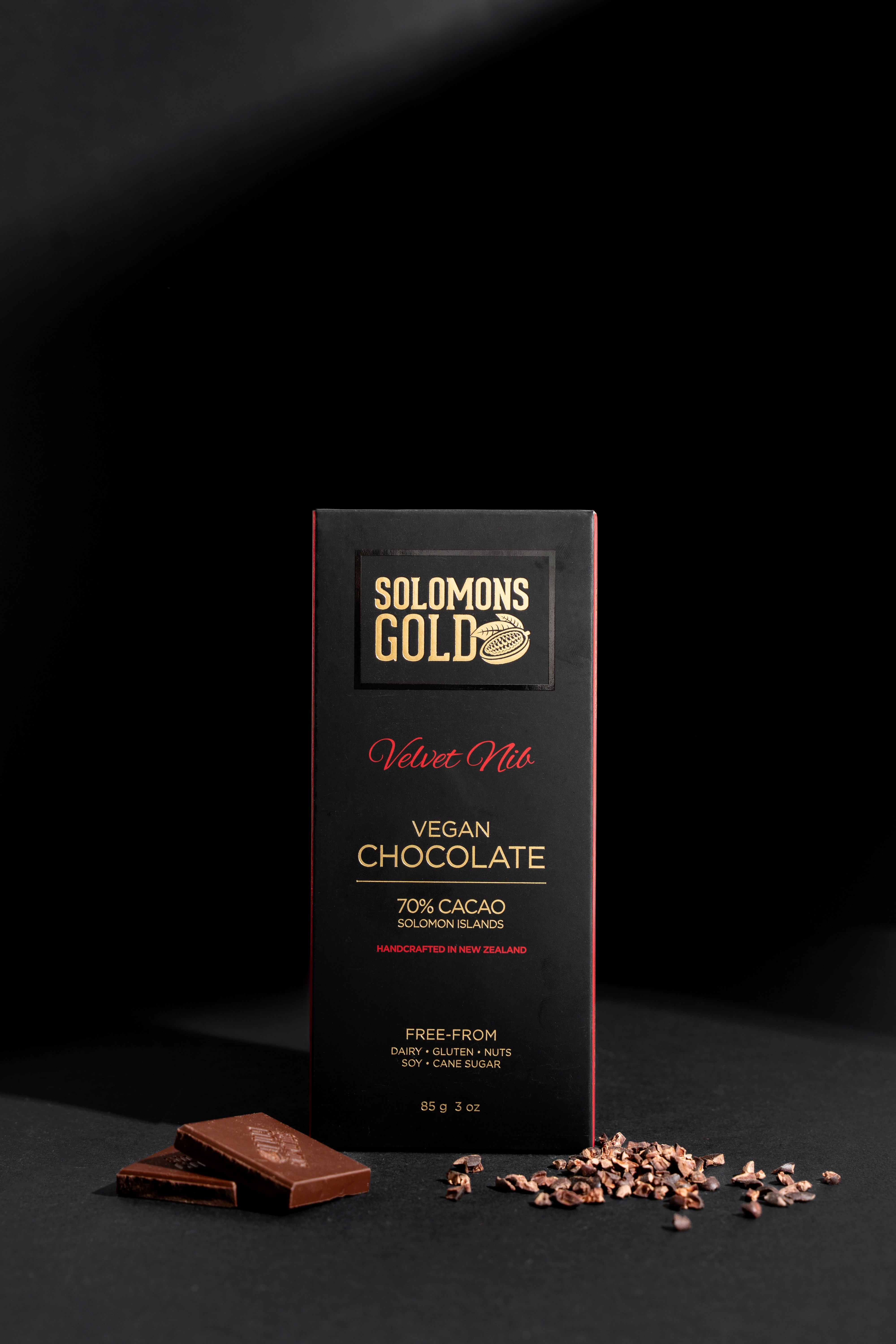 Each bite is a sensory delight of our rich cacao beans which bring subtle notes of roasted maple, coffee, and a whisper of coconut. Dark Velvet 65% is smooth, rich and velvet like. We add our own cacao nibs to our Velvet Nib 70% bar which add a satisfying crunch and a burst of 100% pure cacao that takes the taste to another level.
