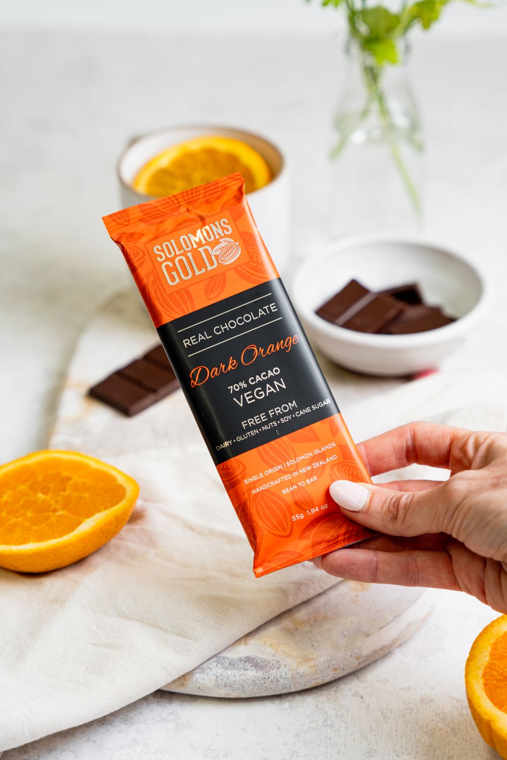 Crafted in small batches from our single-origin Solomon Islands cacao, grown in nutrient-rich volcanic soil and sourced through our own social enterprise, Dark Orange is a sophisticated twist on a timeless pairing.