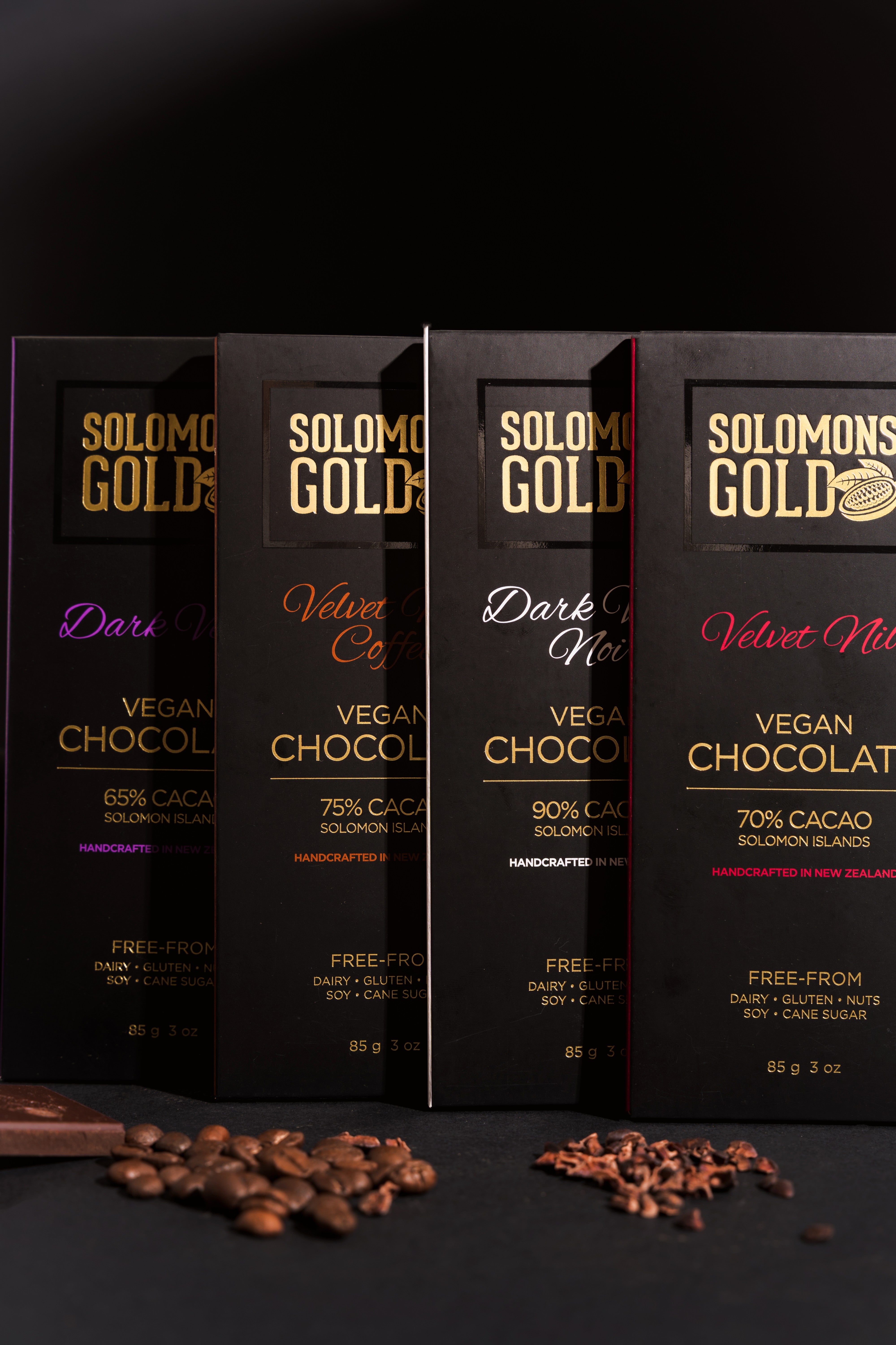 Experience the deep intensity of Dark Velvet Noir 90%, where exceptionally high cacao reveals a bold, rich expression of pure cacao with a luxuriously smooth finish. This is an intensely dark chocolate for those who appreciate high cacao and bold flavour.